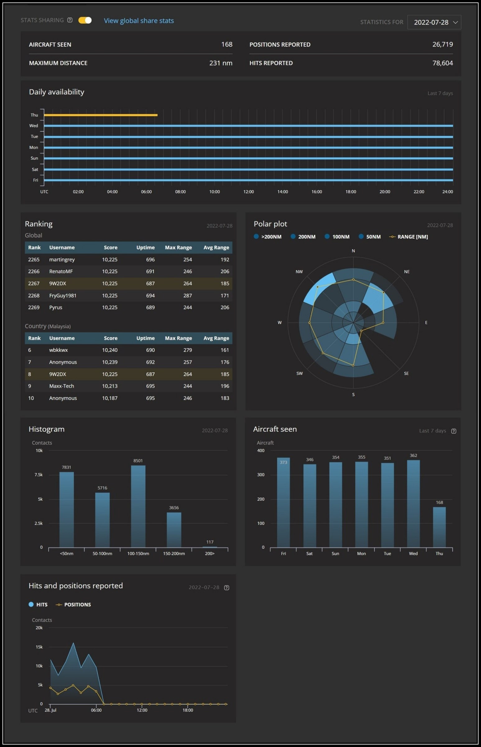 FlightRadar24廣播式自动相關監視系统 ADS-B是广播式自动相关监视的英文缩写: Automatic 自动,全天候运行,无需职守。 Dependent 相关,它只需要于依赖精确地全球卫星导航定位数据。 Surveillance 监视,监视(获得)飞机位置、高度、速度、航向、识别号和其它信息。 Broadcast 广播,无需应答,飞机之间或与地面站互相广播各自的数据信息。 FlightAware广播式自动相关监视系统 Pages: Page 1, Page 2